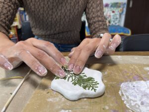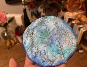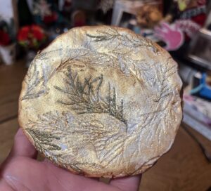 ps fantastically fun and simple seasonal craft pictured above – all you need is some spruce / pine and clay! Imprint, engrave, let dry and paint and save these beauties for next year 🙂